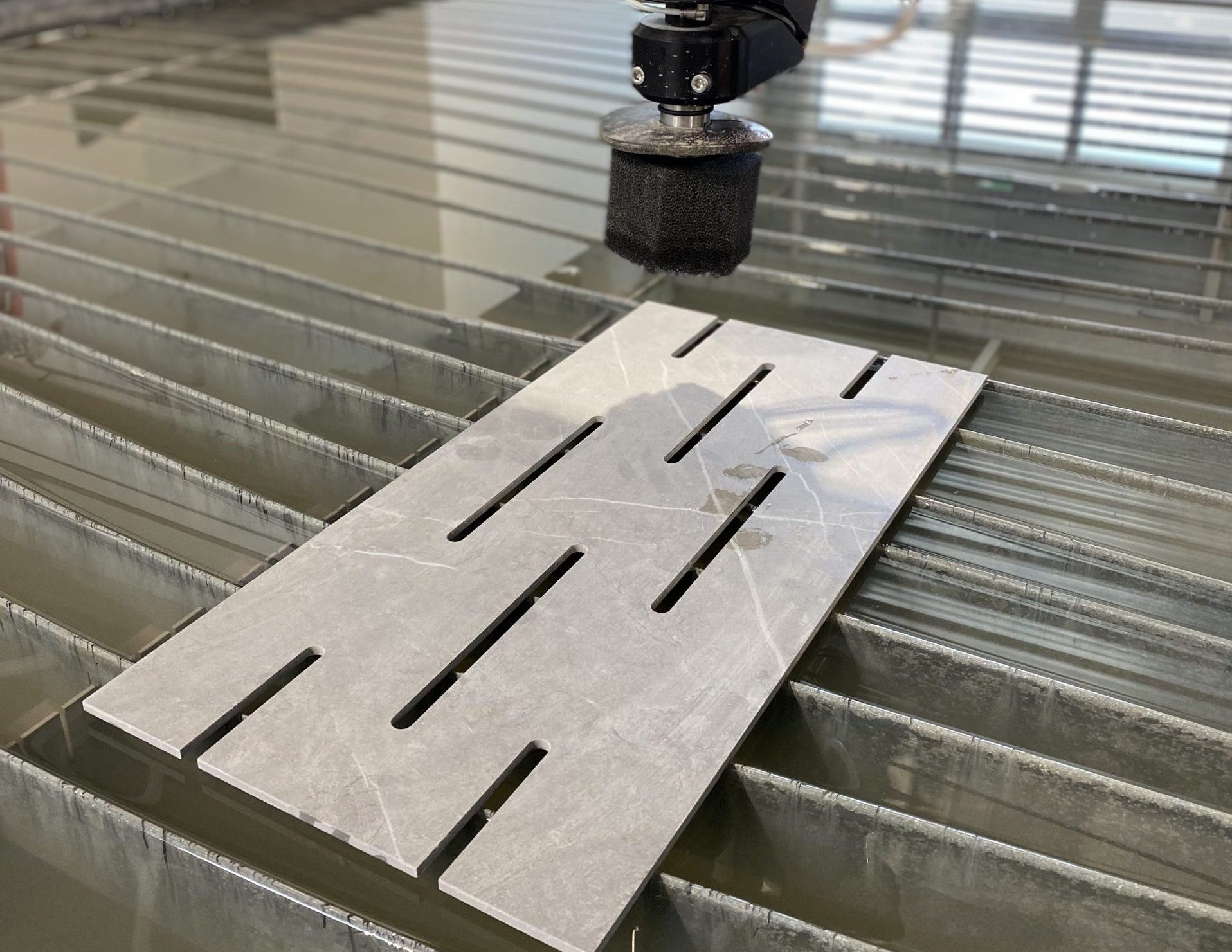 Découpe au jet d’eau sur tous supports : Acier, Aluminium, Titane, Cuivre, Bronze, Laiton, Verre, Céramique, Marbre, Granit, Plastique, Caoutchouc, Bois, Mousse, Tissus